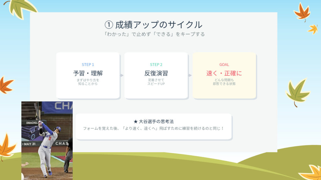 成績UPのコツは、「わかった」で止めず「できる」をキープする。