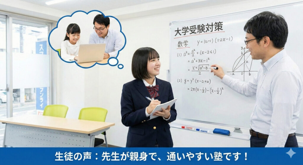 教え方が、生徒の特性をしっかりキャッチして向き合ってくださる塾に出会えてよかったです!!!